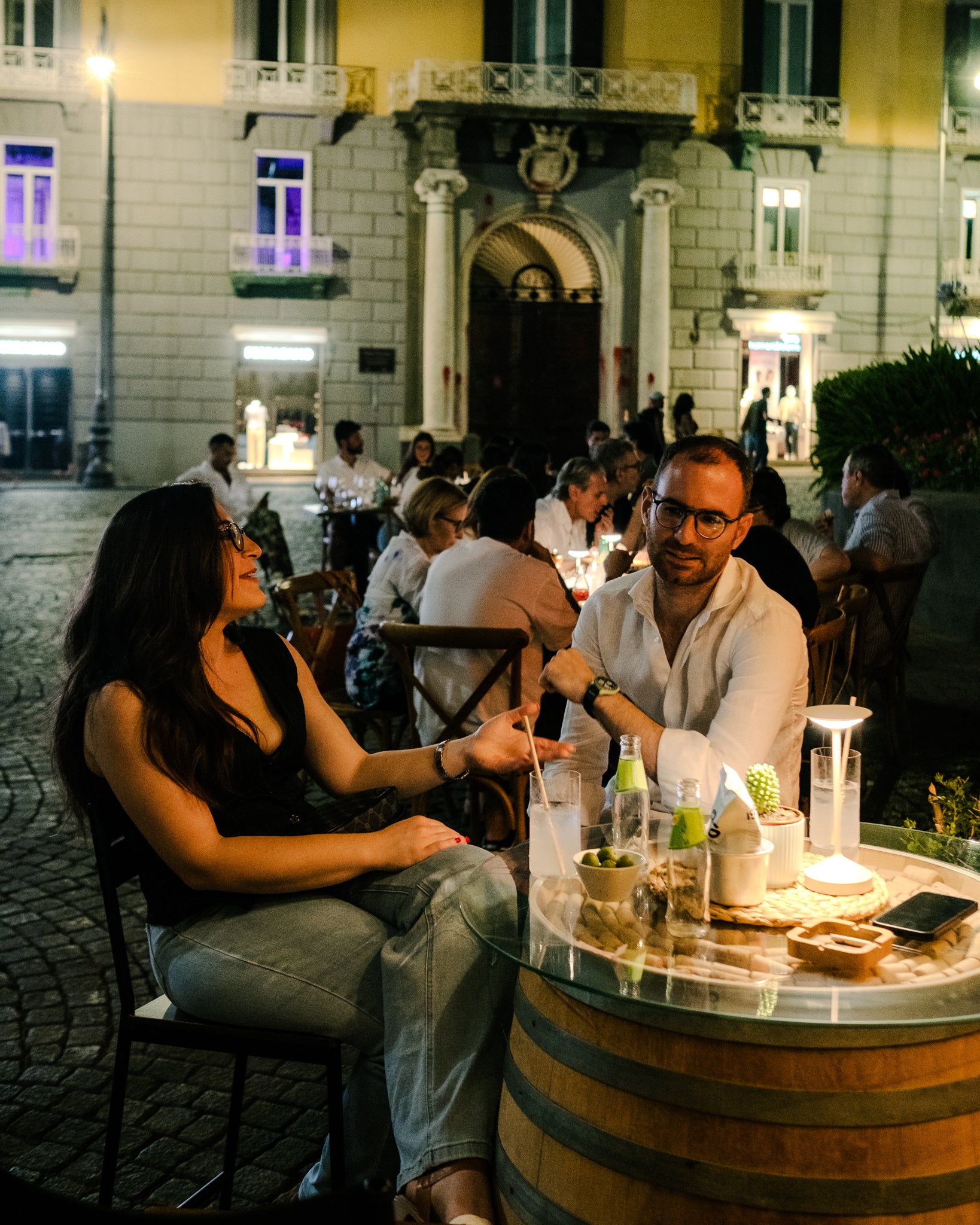 Calici in mano, luci soffuse e un'atmosfera intima avvolgono i sensi in questo tempio del gusto.